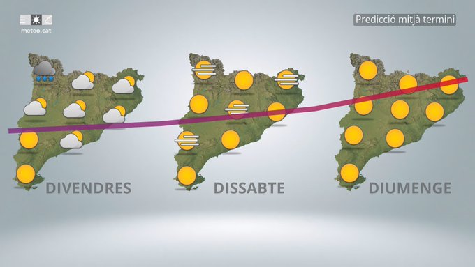 No es descarten precipitacions febles i molt puntuals, però en conjunt s’espera un dia majoritàriament estable, sense episodis de pluja destacables. El vent serà fluix, fet que afavorirà una sensació tèrmica força suau al migdia.