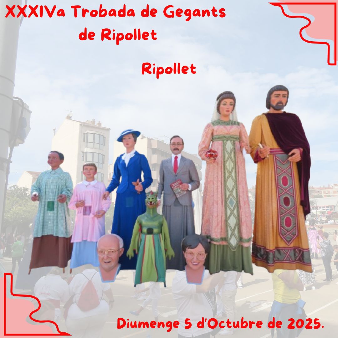 Aquest 5 d’octubre al matí, Ripollet es vestirà de festa per acollir la XXXIV Trobada de Gegants, una cita imprescindible per als amants de la cultura popular. Enguany hi participaran colles vingudes d’arreu de Catalunya: Bertrans de Solsona, Esplugues de Llobregat, Barri antic de Barcelona, Sant Vicenç de Castellet, Canovelles, Caldes d’Estrac, Valldoreix, Can Oriol o el Pinar de Rubí, Barberà del Vallès, el Prat de Llobregat i Sant Andreu de Llavaneres, acompanyant als Gegants i Capgrossos de Ripollet.