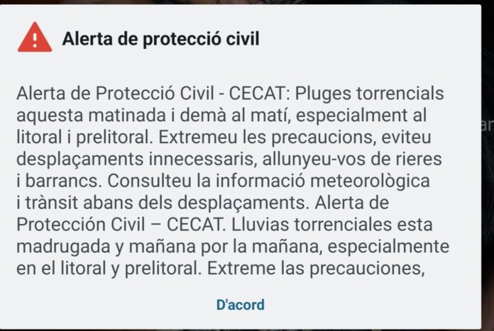 Les autoritats recomanen extremar la precaució durant les hores de pluja més intensa, evitar desplaçaments innecessaris i mantenir-se informat de l’evolució meteorològica.