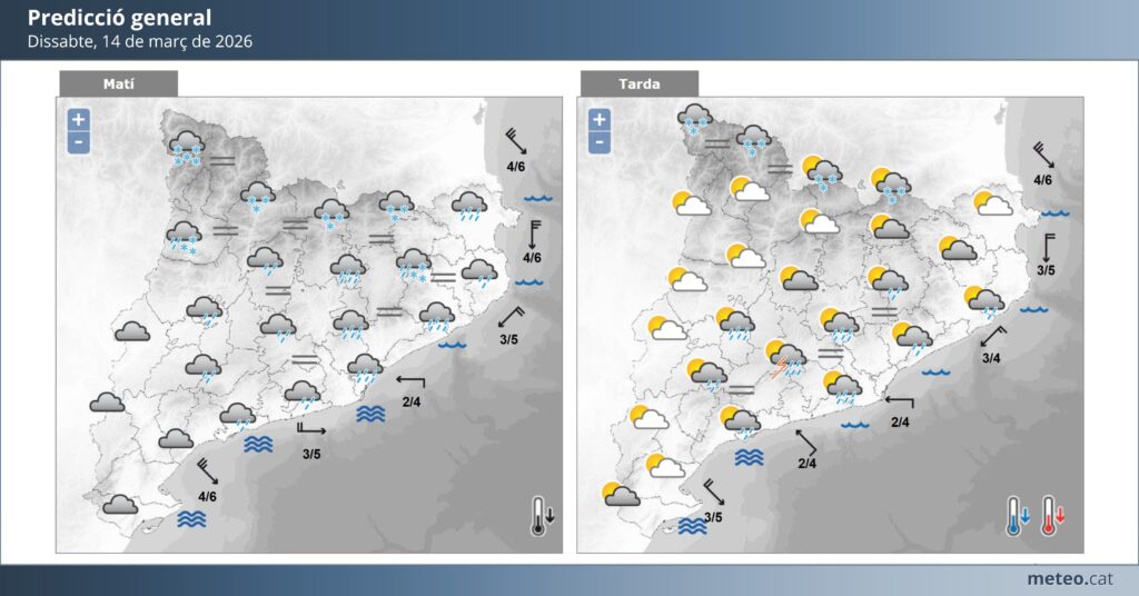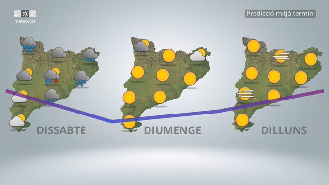 De cara a dissabte, el cel es presentarà amb intervals de núvols i estones de sol, especialment durant les hores centrals del dia. La temperatura mínima es mourà al voltant dels 4 °C, mentre que la màxima podria arribar aproximadament als 15 °C. El vent bufarà fluix, principalment de component oest o nord-oest, fet que afavorirà una jornada força tranquil·la des del punt de vista meteorològic.