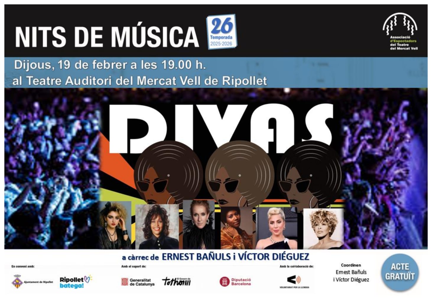 Aquest dijous, l’Associació d’Espectadors va obsequiar el públic amb una nova sessió del cicle Nits de Música al Teatre Auditori, dedicada en aquesta ocasió a les grans dives de la música contemporània del segle XX i també a algunes de les veus més destacades del segle XXI.