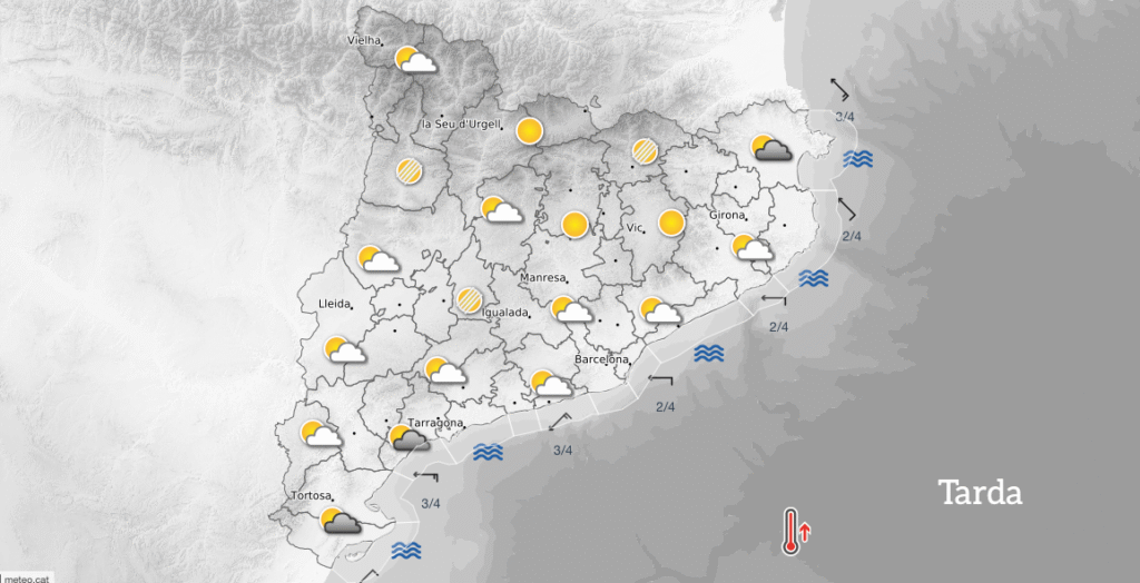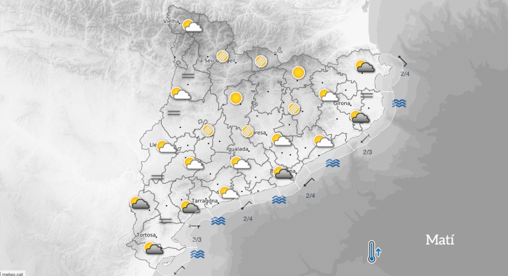 Tot i la presència de núvols, no s’esperen precipitacions destacables durant la jornada, de manera que el dia serà ideal per activitats a l’aire lliure, sobretot al migdia, quan el termòmetre assolirà els valors més alts.