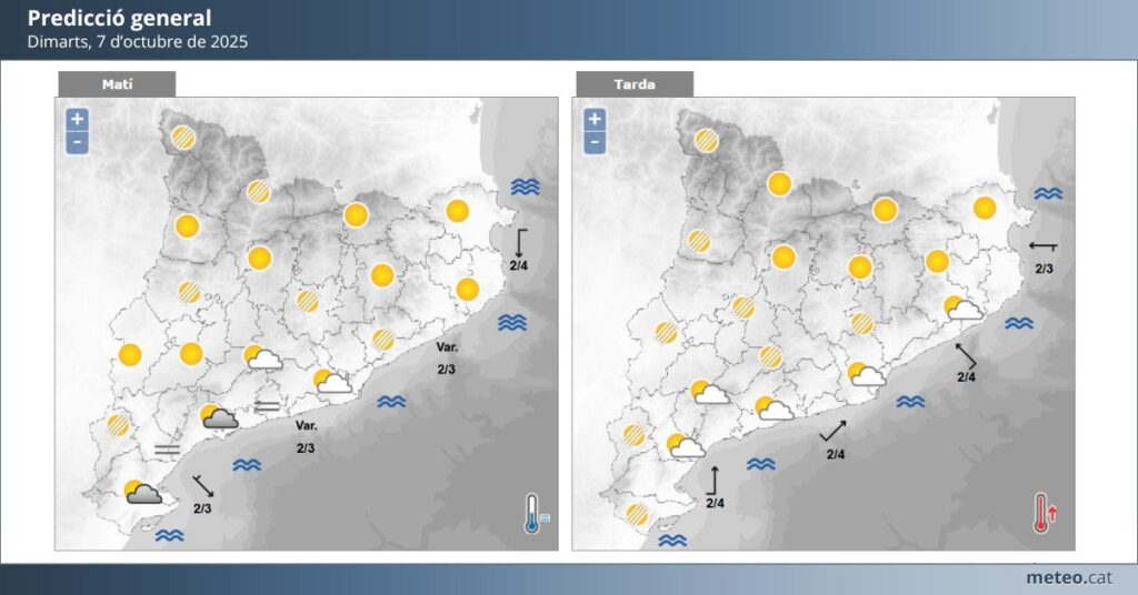 Avui dimarts, la jornada serà estable i suau, marcada per un cel variable i temperatures agradables pròpies de l’inici de la tardor.