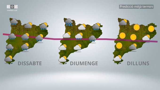 En canvi, diumenge 26 d’octubre, la situació canviarà. Es preveu una mica de pluja i un descens notable de les temperatures, amb màximes que rondaran els 18 °C i mínimes al voltant dels 8 °C. El cel estarà més tapat i el vent podrà accentuar la sensació de fred.