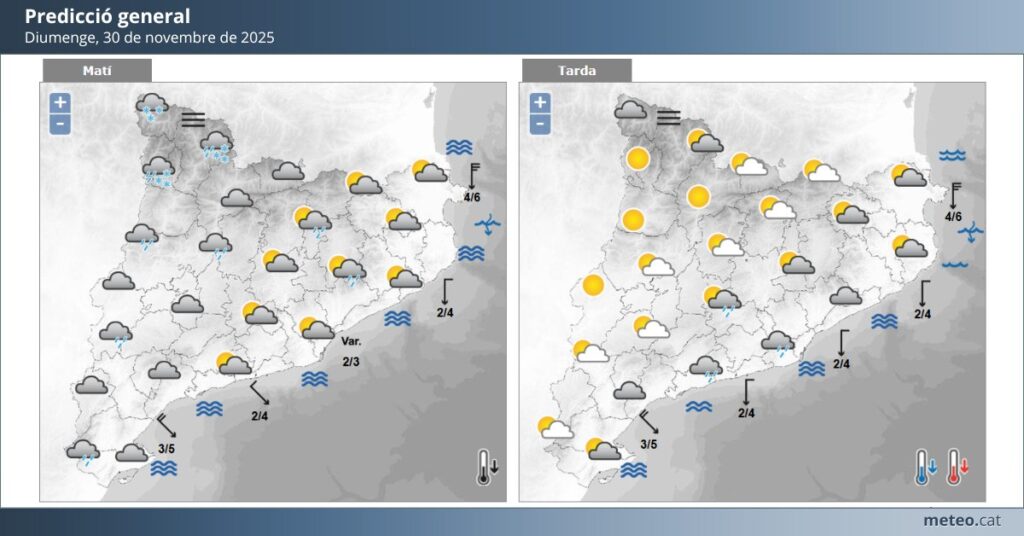De cara a dilluns, 1 de desembre, el temps farà un gir cap a l’estabilitat i el sol, amb un cel clar que es mantindrà gran part del dia. Les temperatures continuaran en la mateixa línia: màximes al voltant dels 15 °C i mínimes properes als 5 °C.