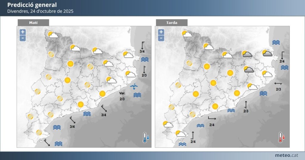 Durant la tarda, el temps serà més estable i assolellat, amb valors que pujaran fins als 20 o 21 °C, un ambient suau per a l’època. Tot i això, el protagonisme se l’emportarà el vent, que bufarà amb força al llarg del dia.