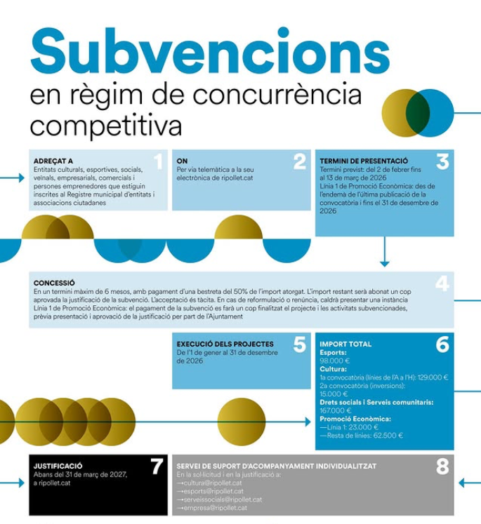 Per facilitar el procés a les entitats interessades, el consistori posa a disposició de la ciutadania una infografia detallada i el calendari de reunions informatives, que es poden consultar a la pàgina web municipal.