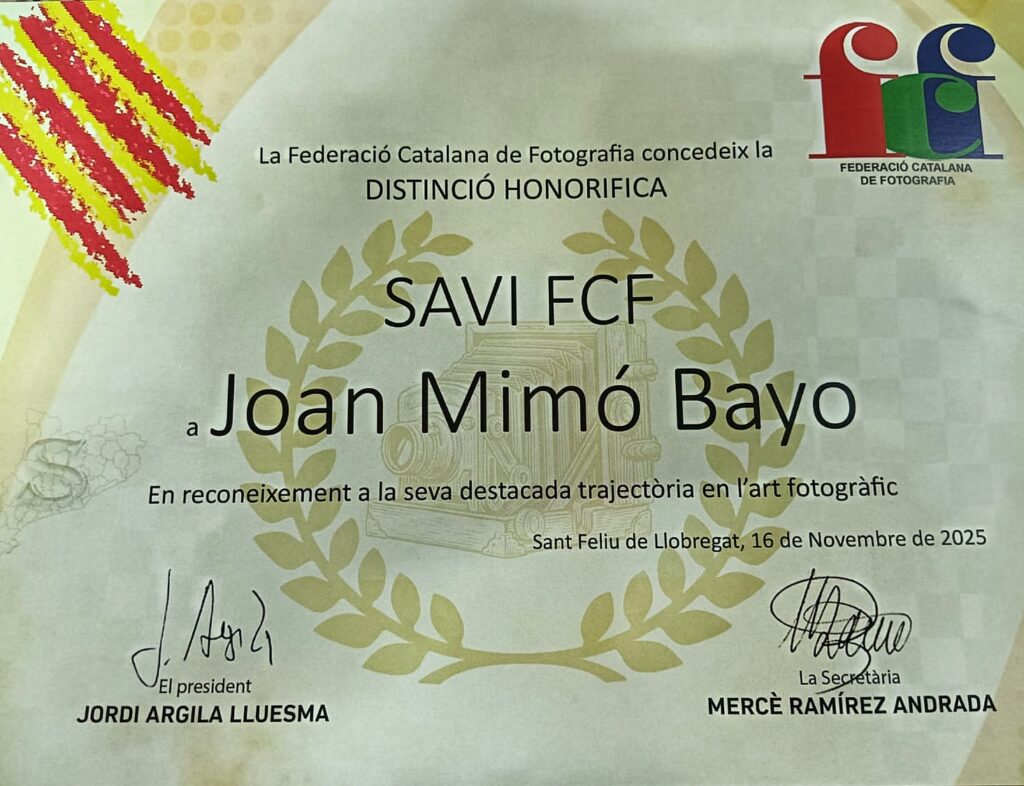 La Federació Catalana de Fotografia (FCF) li ha atorgat algunes de les seves màximes distincions, com el títol de Savi FCF i el de Mestre Diamant (MFCFd), en reconeixement a tota una vida dedicada a la fotografia, a la qualitat sostinguda de la seva obra i al seu coneixement profund del mitjà fotogràfic.