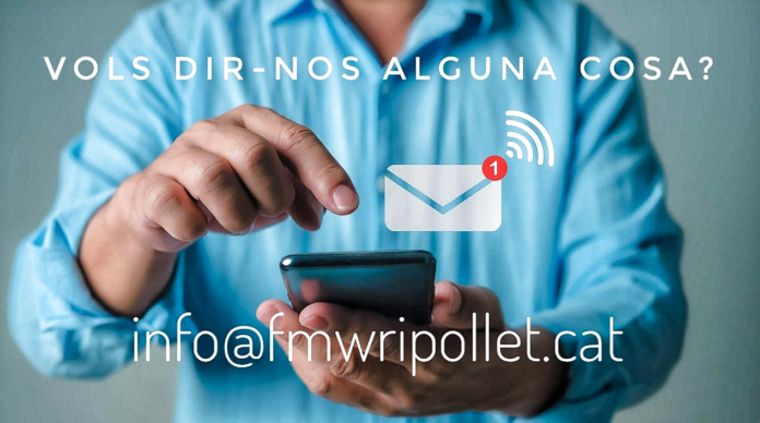 Aquest és el correu electrònic de fmwripollet.cat. Si voleu fer-nos arribar qualsevol comentari, denúncia, nota de premsa, convocatòria o queixa, teniu aquest correu a la vostra disposició.