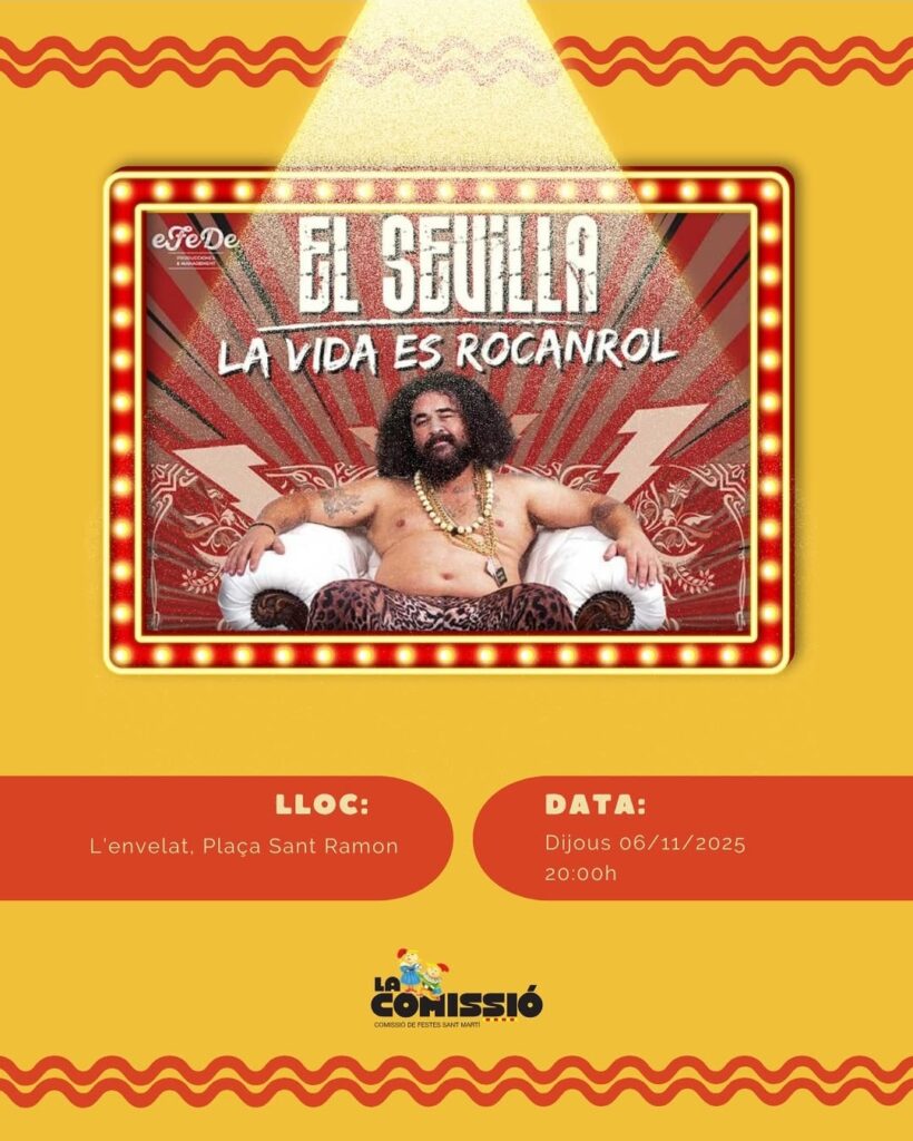 El toc d’humor arribarà amb El Sevilla i el seu espectacle ‘La vida es rocanrol’, que es podrà veure el dimecres 5 de novembre a l’Envelat de la plaça Sant Ramon. Les entrades estan disponibles a vivetix.com i presencialment avui i demà al Bar Grau de 19 a 21 h.