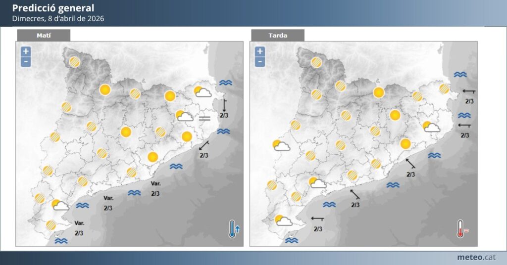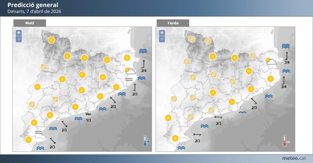 En conjunt, els dos dies mantindran una dinàmica típica d’inicis d’abril: temps estable, temperatures suaus i absència de fenòmens destacables, amb petites variacions en la nuvolositat.