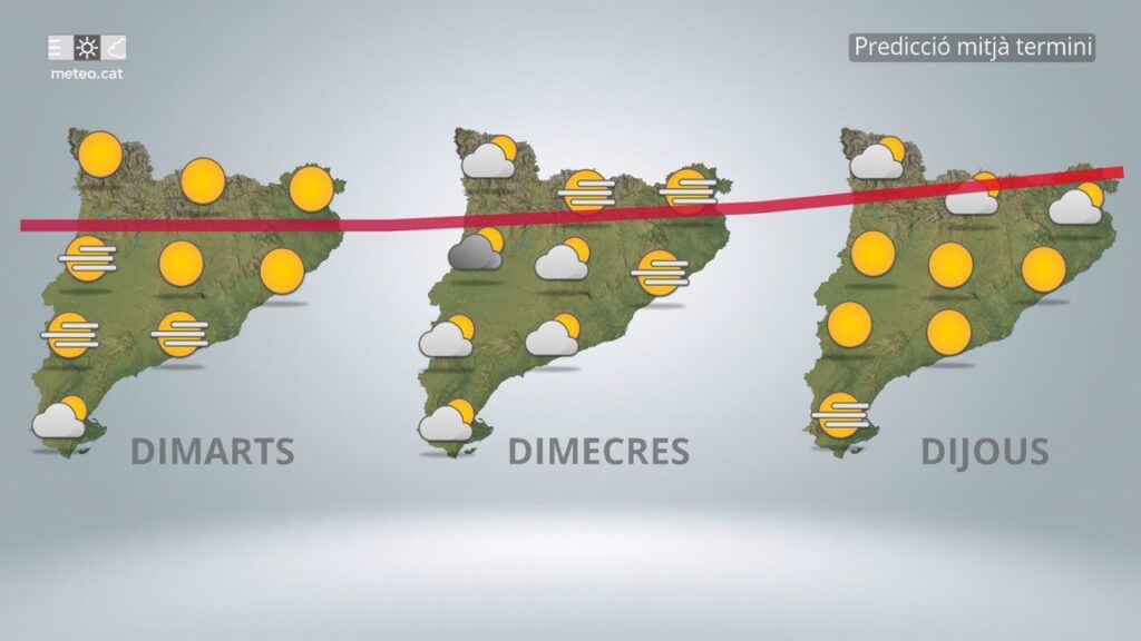 De cara a dimecres, el temps tendirà a obrir-se lleugerament, amb intervals de núvols i més estones de sol. Les temperatures experimentaran un lleu ascens, amb màximes que podrien arribar als 16 °C, mentre que les mínimes es mantindran similars o lleugerament més baixes.