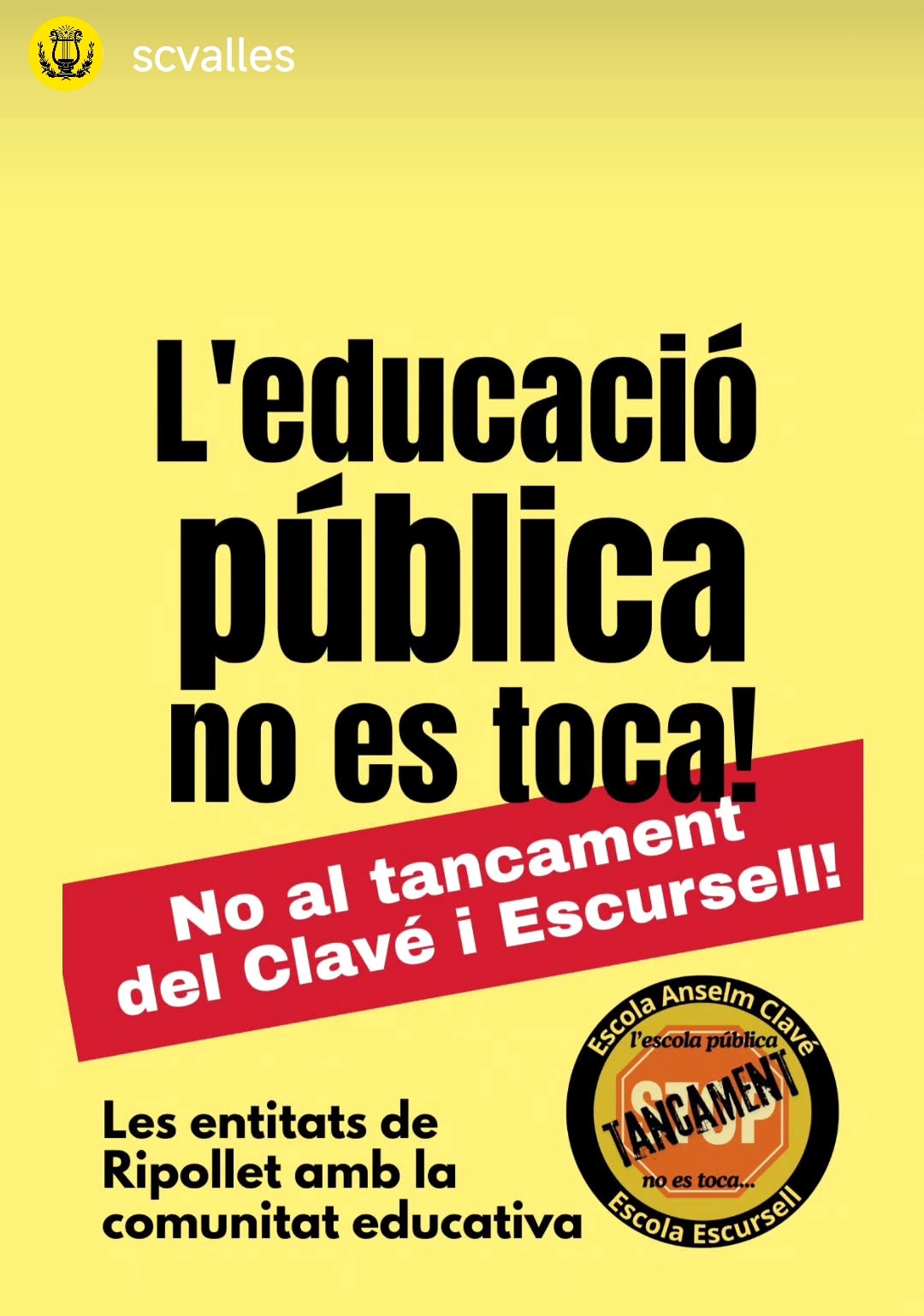 Ara ha estat la Societat Coral El Vallès qui ha publicat a xarxes la seva adhesió al moviment dels mestres i les AMPA.