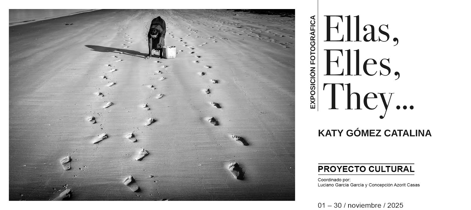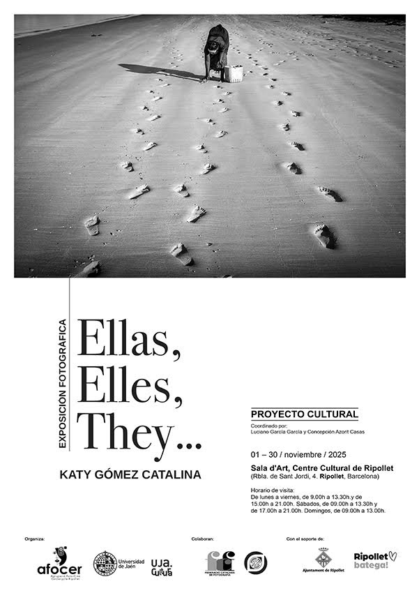 La Sala d’Art del Centre Cultural de Ripollet acollirà, de l’1 al 30 de novembre, l’exposició fotogràfica “Ellas, Elles, They…”, de la reconeguda fotògrafa Katy Gómez Catalina. La mostra és organitzada per AFOCER i coordinada per Luciano García García i Concepción Azorit Casas. La inauguració tindrà lloc el divendres 7 de novembre a les 18.30 h, i comptarà amb la presència de l’autora.