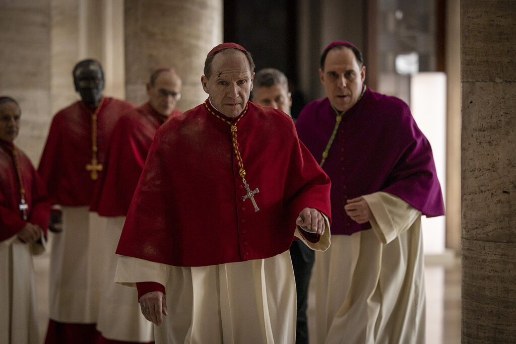 El relat se centra en el cardenal Thomas Lawrence, interpretat amb contenció i ambigüitat moral per un Ralph Fiennes en estat de gràcia. Com a responsable d’organitzar el conclave, Lawrence es veu arrossegat a una investigació subterrània sobre secrets, aliances i escàndols dels principals candidats al pontificat. Al seu costat, un repartiment coral de primer nivell —Stanley Tucci, John Lithgow, Sergio Castellitto i Isabella Rossellini— aporta densitat política i psicològica a una història que avança entre silencis, mirades i conspiracions velades.