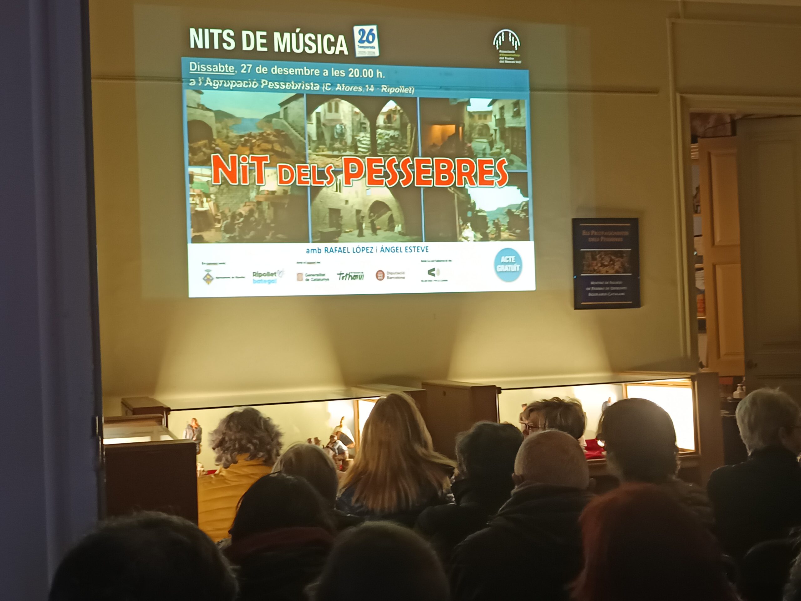 La seu de l’Agrupació Pessebrista de Ripollet es va convertir aquest dissabte, 27 de desembre, a les vuit del vespre, en un espai de trobada entre l’art, la tradició i la memòria col·lectiva. En el marc del cicle Nits de Música, i aprofitant que la Federació Catalana de Pessebristes va escollir aquest dissabte com a Nit del Pessebre a Catalunya, celebrant-ho a diferents punts de país, el públic de casa nostra, va poder gaudir d’una sessió especialment emotiva dedicada als Pessebres de Nadal, una expressió artística que forma part del patrimoni cultural català.