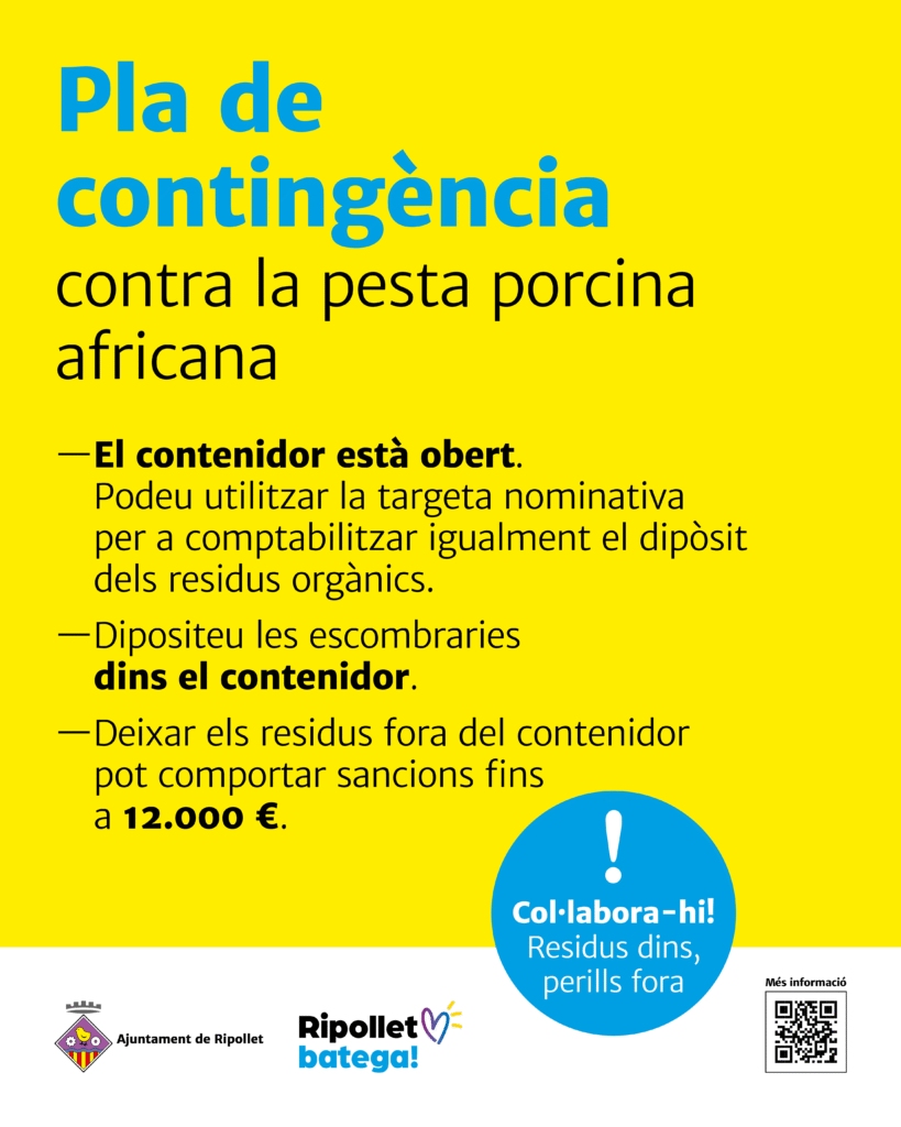 L’Ajuntament de Ripollet ens ha fet arribar les mesures excepcionals que ha establert per prevenir i contenir la pesta porcina africana.