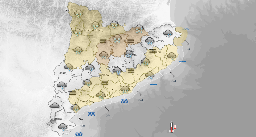Dissabte serà el dia més advers, amb el cel molt ennuvolat o completament cobert i pluges persistents, especialment durant el matí i el migdia. Les precipitacions podran ser febles a moderades, però no es descarta que en alguns moments guanyin intensitat, fet que podria deixar registres destacables al conjunt del prelitoral. Les temperatures es mantindran suaus per l’època, amb valors al voltant dels 10 a 13 graus, acompanyats d’una elevada sensació d’humitat.