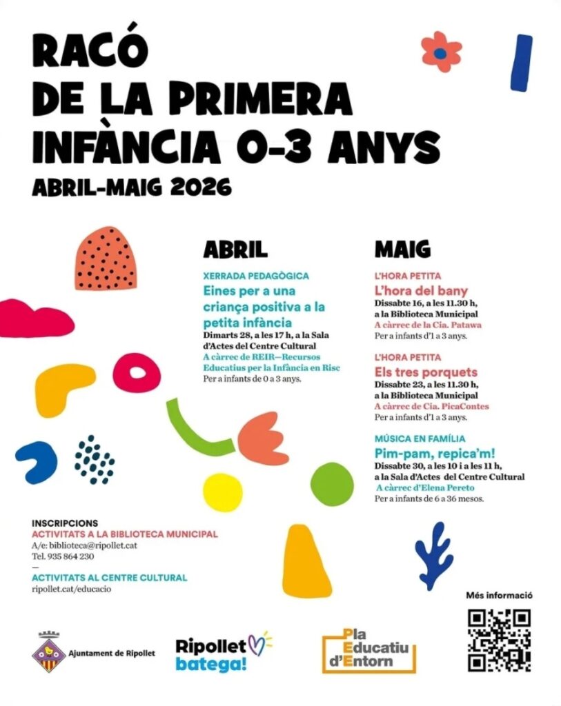 Ripollet – És torna a posar el focus en els més petits amb una nova edició del Racó de la Primera Infància, una proposta cultural i educativa adreçada a infants de 0 a 3 anys i a les seves famílies. Entre finals d’abril i tot el mes de maig, la Biblioteca Municipal i el Centre Cultural es convertiran en escenaris de trobada, aprenentatge i vincle a través de contes, música i espais de reflexió pedagògica.