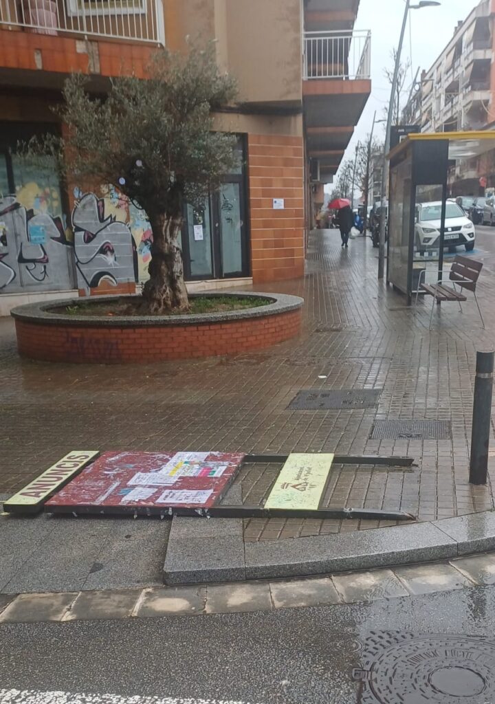 Sembla que aquest dimarts 20 de gener, el vent i la pluja es van endur algun cartell a la carretera de l’Estació, a Ripollet. O ha estat una bretolada?