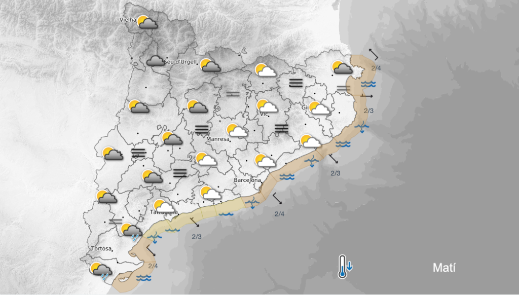 Per al dijous 22 de gener, el patró meteorològic no canviarà dràsticament: es mantindran les temperatures suaus dins dels valors habituals d’aquest mes, amb màximes al voltant de 14 °C i mínimes prop dels 5 °C, i alguns xàfecs dispersos al llarg de la jornada. Tot i que les precipitacions podrien ser irregulars, el cel romandrà amb nuvolositat abundant i ratxes de vent moderat que accentuaran la sensació de frescor.