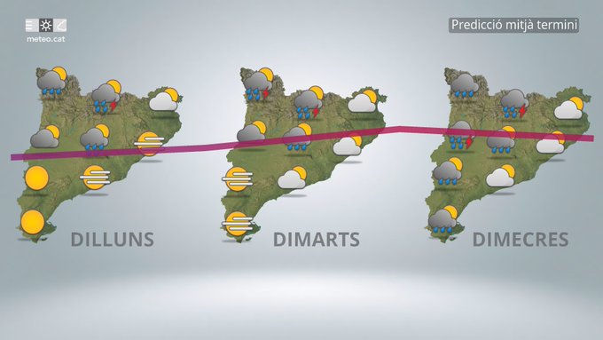 De cara a dimarts, la situació meteorològica no experimentarà grans canvis. S’esperen també intervals de núvols, amb més clarianes durant alguns moments del dia. Les temperatures es mantindran similars o lleugerament més suaus, amb màximes al voltant dels 20–22 °C i mínimes prop dels 12 °C. El risc de pluja continuarà sent molt baix, consolidant una dinàmica de temps sec i estable.