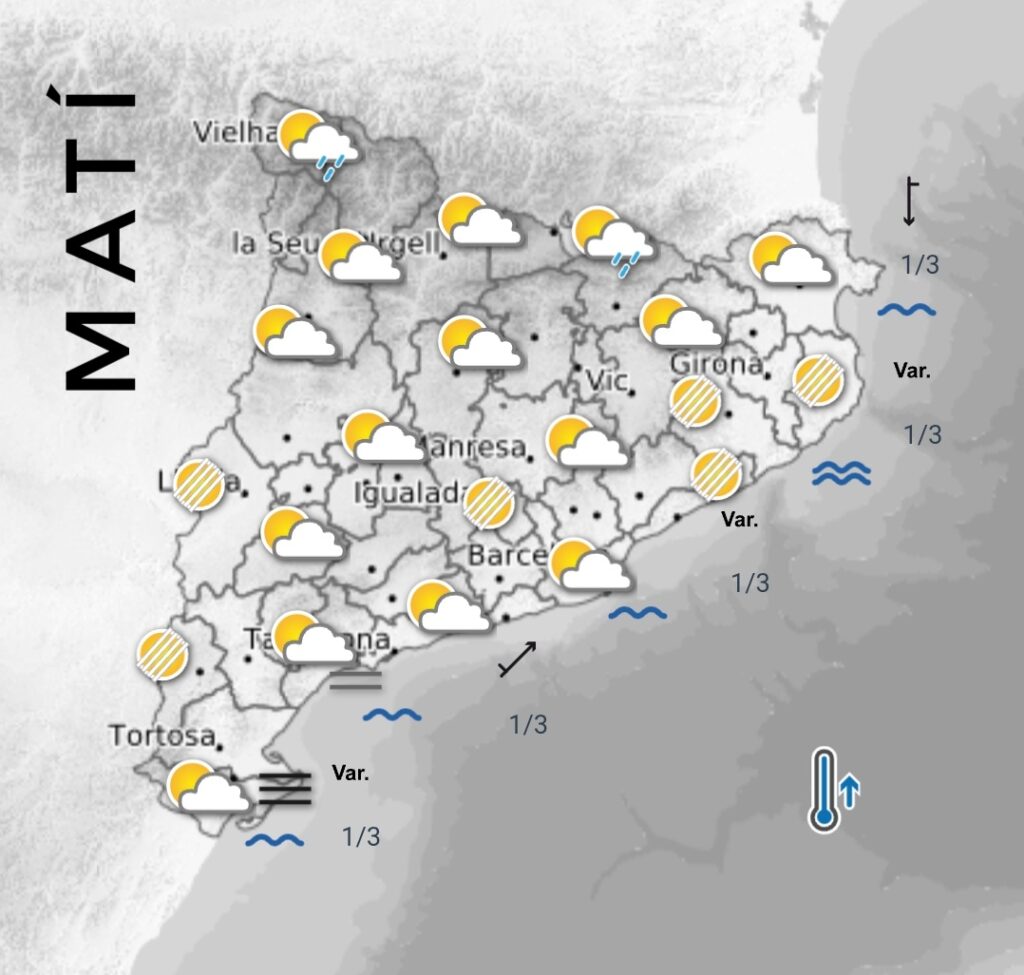 El temps a Ripollet per aquest diumenge 19 d’abril vindrà marcat per l’estabilitat i un ambient típicament primaveral. El matí serà assolellat, amb algun interval de núvol baix poc important a primera hora. A la tarda, poden aparèixer alguns núvols d’evolució, però sense conseqüències destacables. Les temperatures seran agradables, amb mínimes al voltant dels 10-12 °C i màximes que podran arribar als 21-23 °C. El vent es mantindrà fluix, amb una lleugera marinada a la tarda.