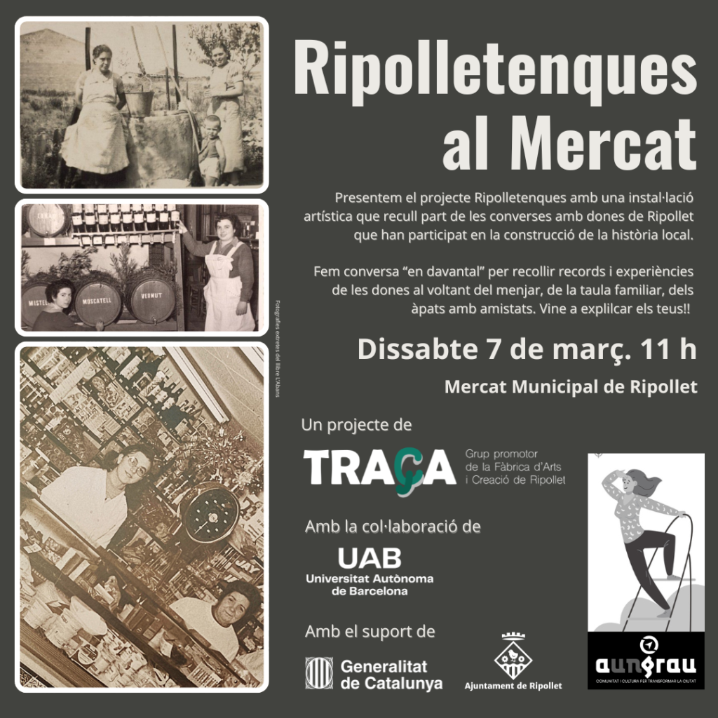 Amb el títol “Ripolletenques al Mercat”, la trobada vol convertir-se novament en un espai de reconeixement, memòria i construcció col·lectiva. Des de Traça conviden totes les interessades a sumar-s’hi i a continuar escrivint, entre totes, la història viva de Ripollet.