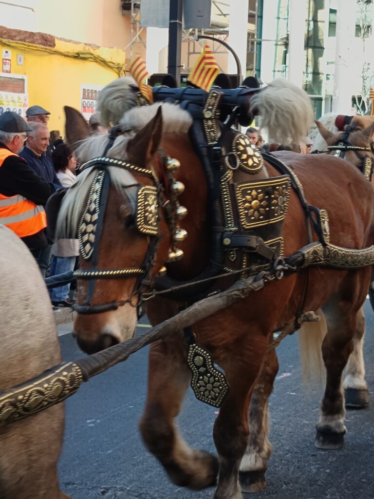 La celebració del diumenge va començar amb l’esmorzar de traginers i un ambient festiu inconfusible. Durant tot el cap de setmana, tant dissabte com diumenge, s’ha pogut visitar i comprar productes al Mercat de Sant Antoni, amb parades a la plaça Pere Quart, que han completat l’oferta lúdica i comercial de la festa.