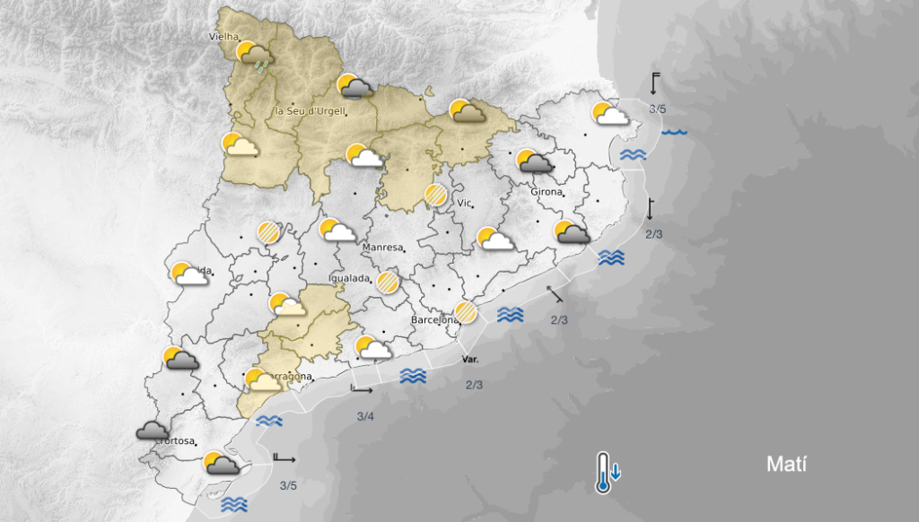 De cara a dimecres 18, la situació serà similar, amb intervals de núvols alternant amb estones de cel més clar. Les temperatures fins i tot podrien pujar lleugerament, amb màximes que podrien assolir els 17 o 18 graus, i mínimes que es mouran entre els 6 i 8 graus. Tampoc no es preveuen precipitacions i el vent continuarà sent poc destacable.