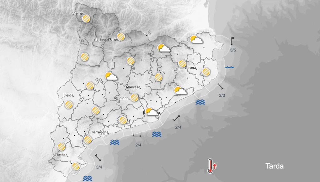 Dimecres 24 de desembre, vigília de Nadal, es presenta amb un ambient força agradable per a l’època. Els termòmetres se situaran al voltant dels 11 o 12 graus de màxima, mentre que les mínimes baixaran fins als 6 o 7 graus. El cel es mantindrà poc ennuvolat o amb intervals de núvols, sense precipitacions destacables, fet que facilitarà els desplaçaments i les activitats a l’aire lliure pròpies d’aquest dia.