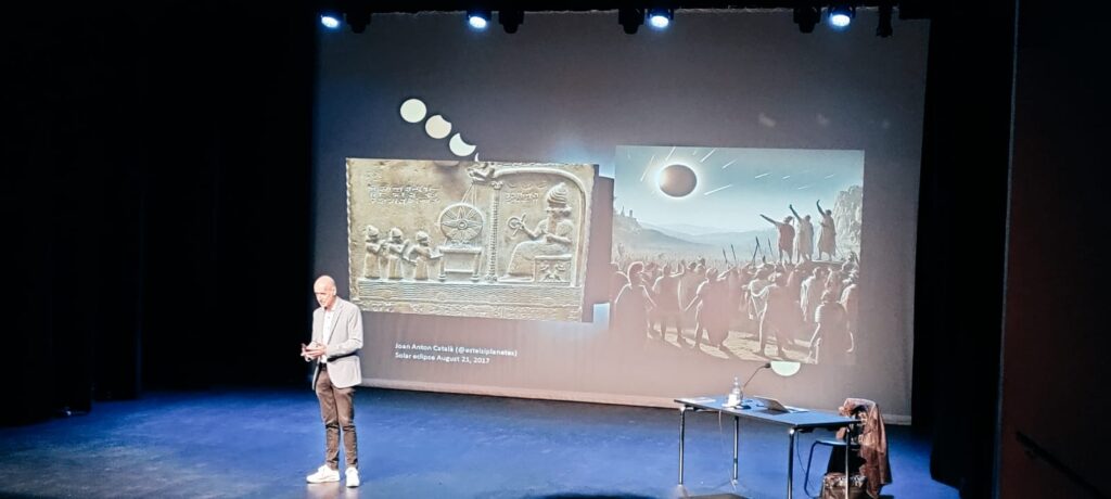 El protagonista de la sessió ens ha endinsat en aquest esdeveniment tan esperat, l’eclipsi total de Sol del 12 d’agost de 2026, un esdeveniment astronòmic de gran rellevància que serà visible des de diverses regions d’Europa, inclosa la península Ibèrica. Durant l’exposició, s’ha explicat com, en aquest fenomen, la Lluna s’interposarà completament entre la Terra i el Sol, ocultant-ne el disc solar i permetent observar la corona, una oportunitat poc freqüent que desperta tant interès científic com fascinació popular.