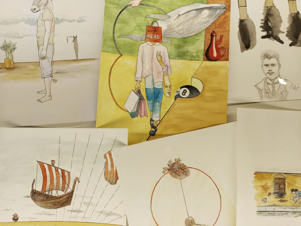 L’exposició ‘Vides exemplars’ reuneix una selecció d’il·lustracions de David Morera, Kle, un artista ripolletenc autodidacta que construeix un univers visual propi a partir de referents clàssics del surrealisme com Dalí, Magritte i Chagall.