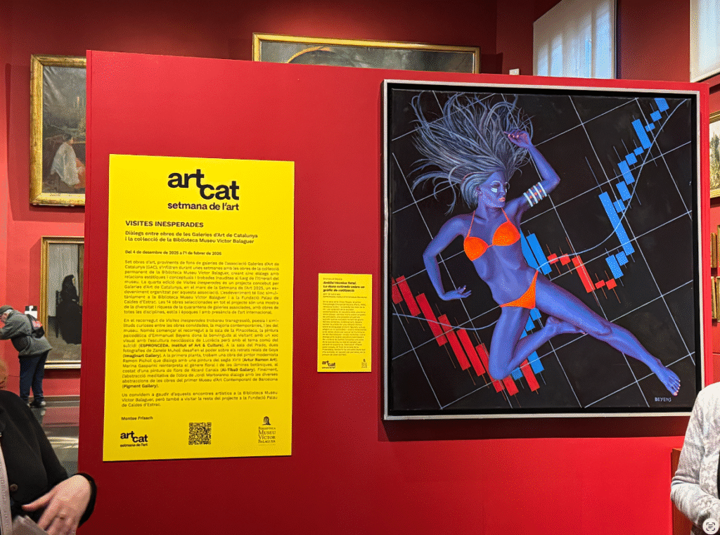 Es tracta d’una mostra singular que reuneix set obres d’art procedents de fons de galeries de l’Associació Galeries d’Art de Catalunya (GAC). Aquestes peces s’han infiltrat durant unes setmanes entre les obres de la col·lecció permanent de la Biblioteca Museu Víctor Balaguer, generant cinc diàlegs amb relacions estètiques i conceptuals i trobades inaudites al llarg de l’itinerari museístic.